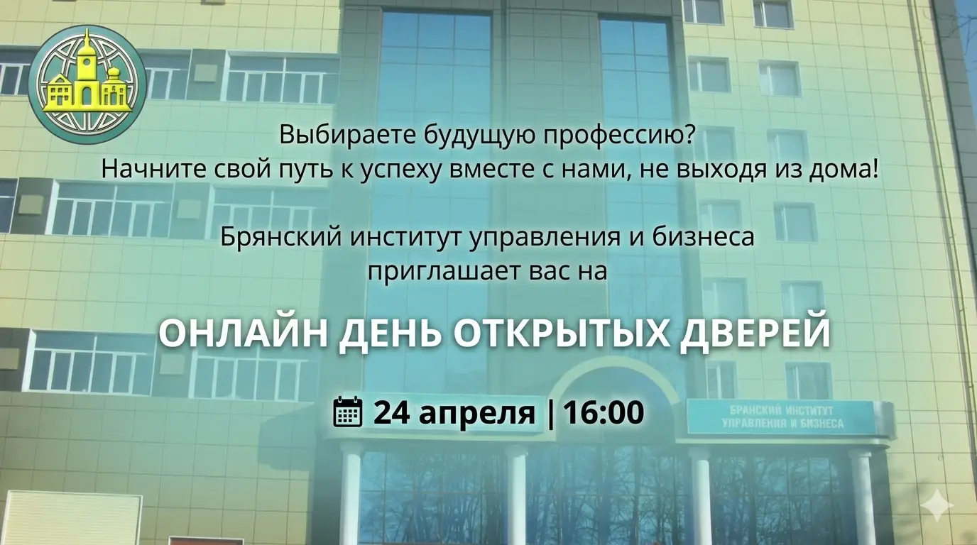 Брянский институт управления и бизнеса приглашает вас принять участие в Онлайн Дне открытых дверей, который состоится 24 апреля в 16:00!