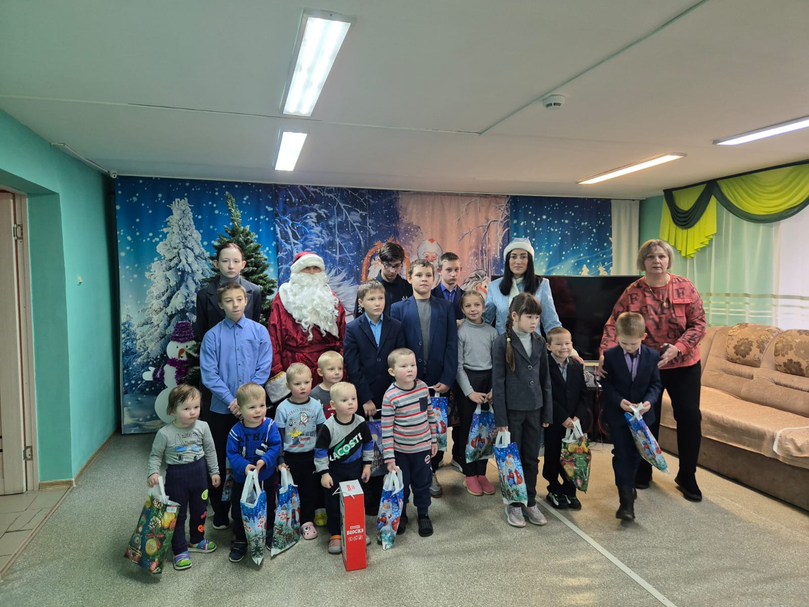Дед Мороз со Снегурочкой поздравили детей с наступающими праздниками и вручили им подарки