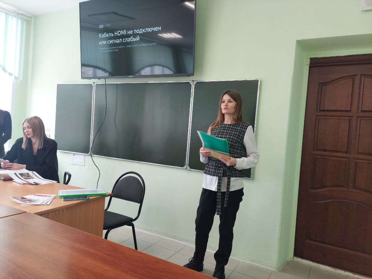 Голышева Ольга Геннадьевна подробно рассказала о правилах поступления в вузы, необходимых документах и возможностях для выпускников техникума. Антошкина Екатерина Александровна рассказала об организации учебного процесса, формах обучения, о внеучебной деятельности студентов института, о важности получения высшего образования.