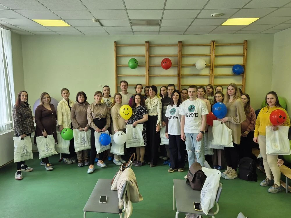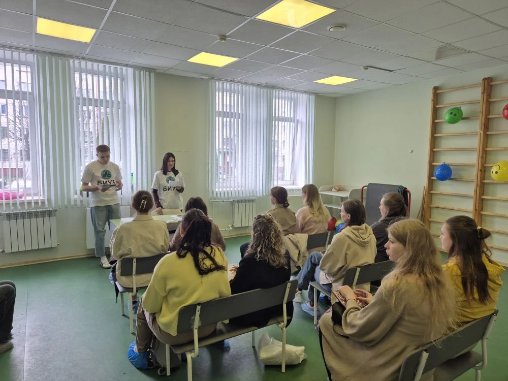 Волонтёры Брянского института управления и бизнеса Хозенко Ольга и Курзин Алексей посетили 7 апреля в День беременных будущих мам поликлиники Бежицкого района.